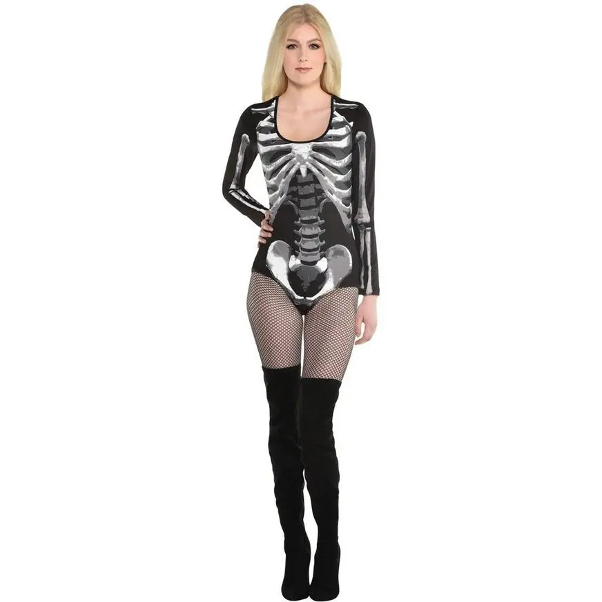 You’re the sexiest body at the party in this Black & Bone bodysuit for adults! The long-sleeve leotard features a super-detailed X-ray print of everything between your neck and your hipbones. In a soft stretch material with a flattering scoop neck, it’s a great foundation for your sexy skeleton look!