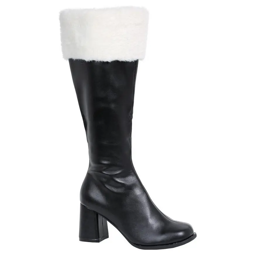 Everyone will be ready to hit the dance floor when they see you prancing around in Black Go-Go Boots for women! These black faux leather high heel boots are knee high with zippers on the sides to comfortably slip them on and off. The tops of the go-go boots feature white faux fur trim. Slip the boots on to complete your 60s go-go dancer costume!