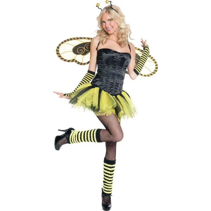 Wear the right Bumblebee Wings to get you from flower to flower. These wire frame Bumblebee Wings for adults feature sheer yellow fabric detailed with striped black and gold glitter border accents. Smaller solid bumblebee wing shapes echo the larger design, and a stylized, glittery black and yellow sunflower sits at the center. Bumblebee Wings are held in place by adjustable elastic shoulder straps. One size fits most teens and adults.
