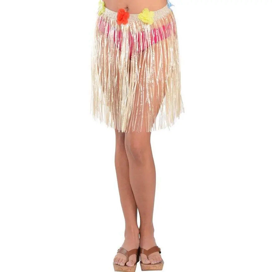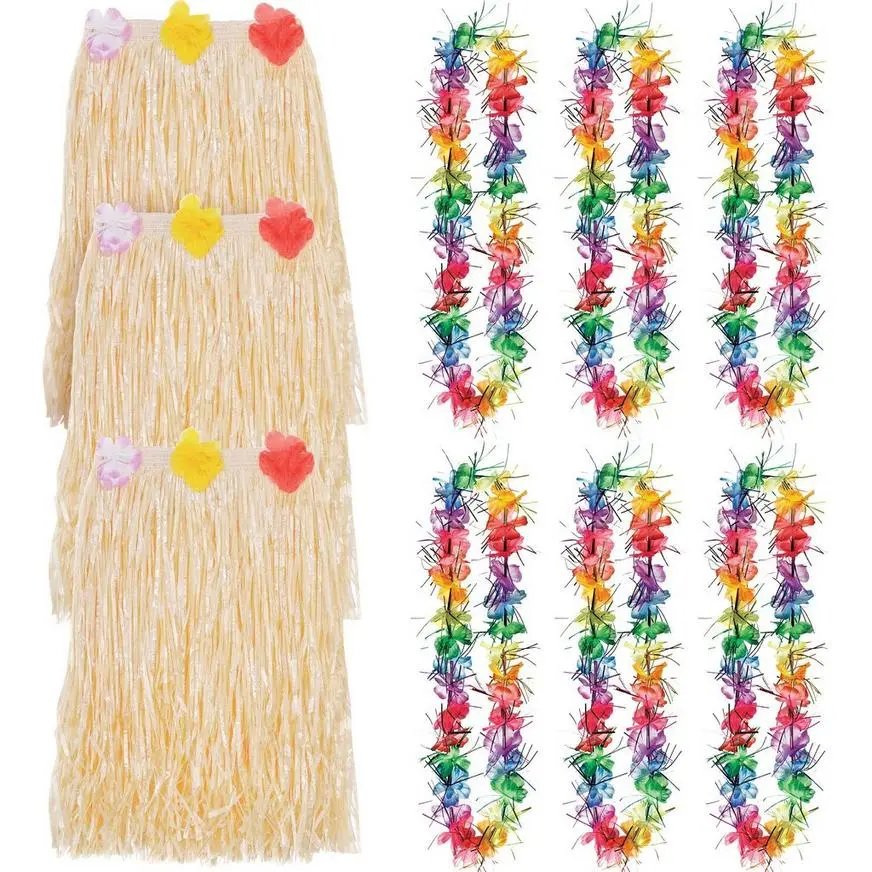 Adult Rainbow Luau Hula Skirt Costume Accessory Kit For 8 Guests