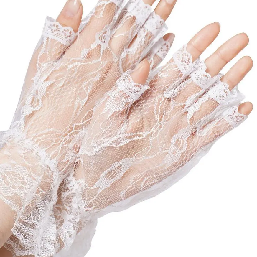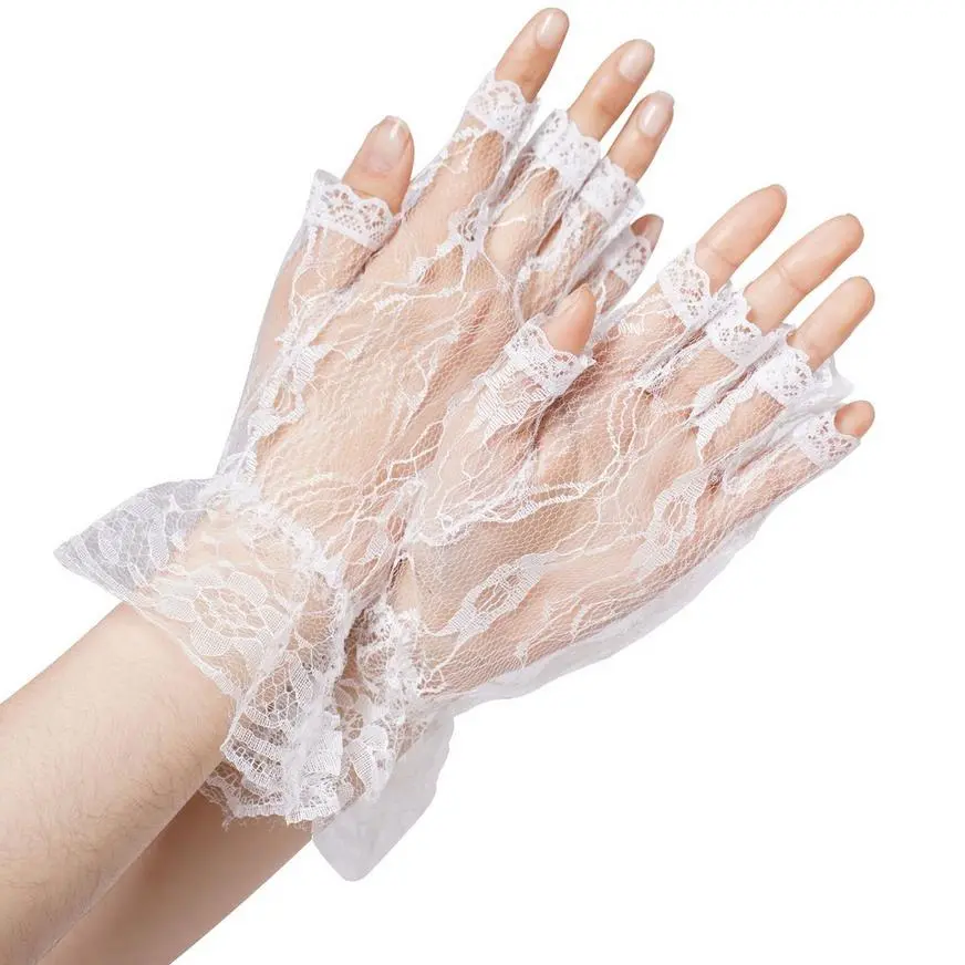 The perfect accessory to add a little fancy fun to your costume, these white lace gloves are fingerless, reach to your wrist with a cute flared hem, and feature a delicate floral design that truly screams Halloween elegance.