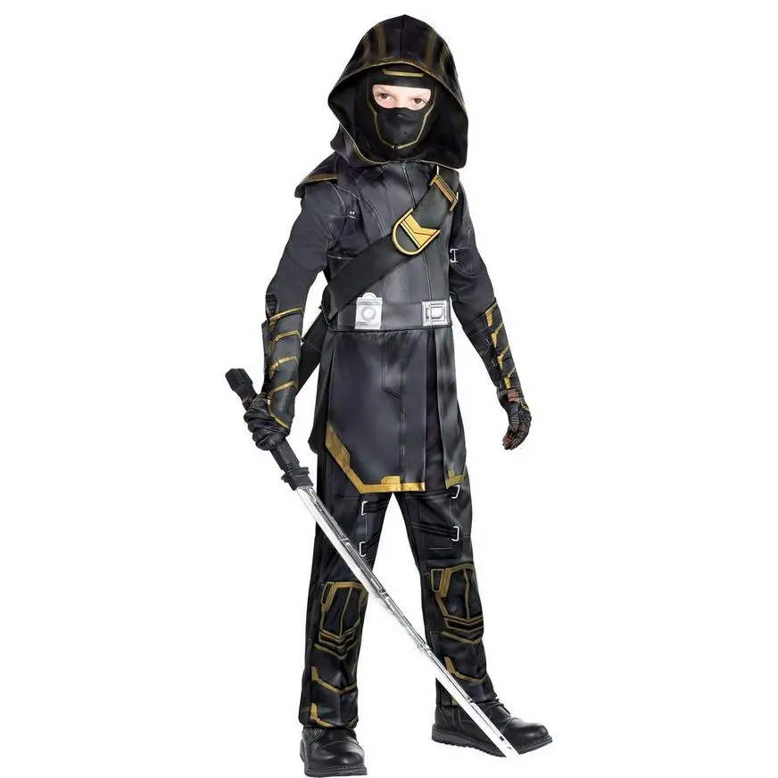 Get your little one ready to take on the action of Halloween with this Avengers: Endgame Ronin Costume for kids! The ensemble features a black polyester jumpsuit printed with the lone warrior’s signature gold details. Finish the costume with the included gloves and mask to get your child fully suited up to face Thanos. Coordinate with their friends to assemble all of the remaining Avengers! Review the size chart for additional information. Shoes and sword not included.