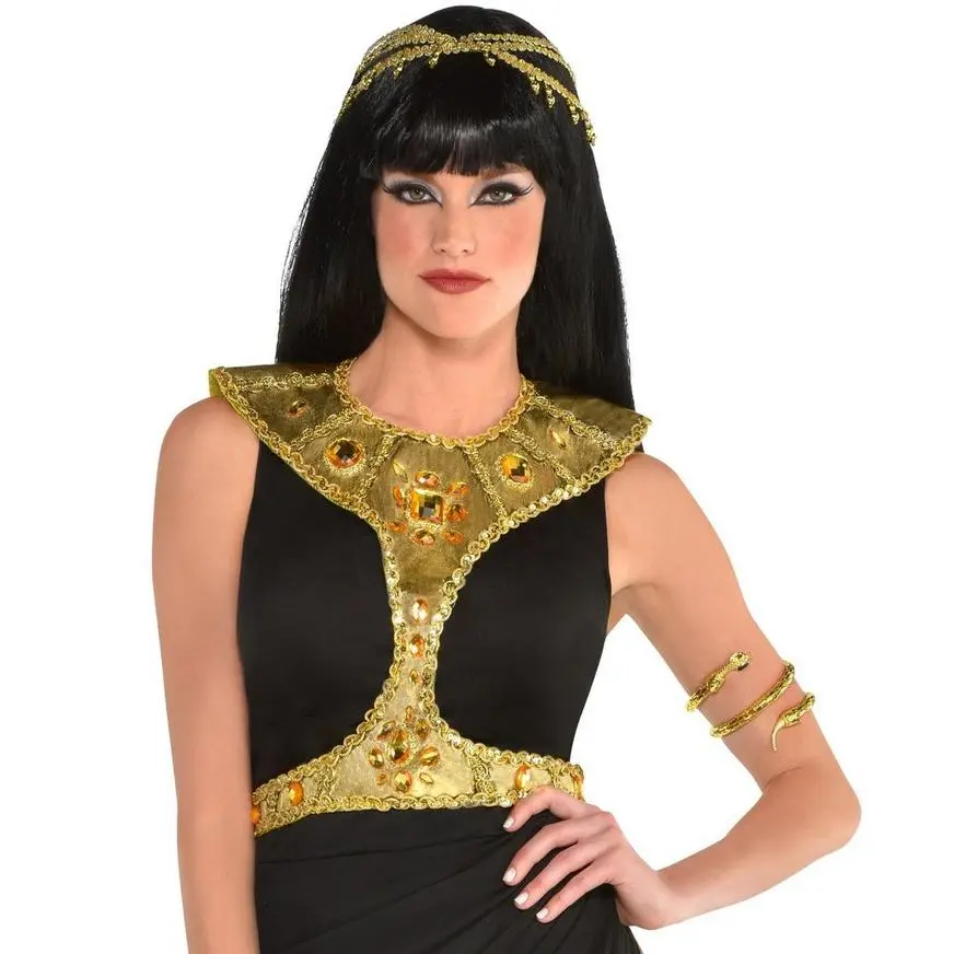 Step into the costume party shining in a Gold Harness! The gold fabric harness wraps around the neckline and waist and is adorned with gold gemstones. Pair this harness with a goddess costume, a queen costume, or other costume idea. You’ll look golden at the Halloween party when you accessorize your costume with this Gold Harness! Headband, dress, and armband not included.
