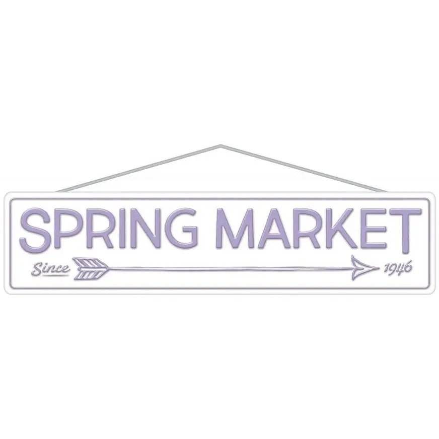 Prepare for the season of new beginnings by swapping out your winter decor for a fresh new look. This hanging sign features the headline “Spring Market Since 1946” in a lavender and white color scheme that’s perfect for spring. Its metal construction and arrow detail give it a true street sign feel, like you’d find it just around the bend from the local farmer’s market. Hang it up using the attached loop to add a rustic touch to your indoor or outdoor living space.