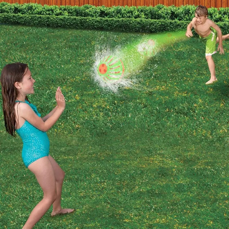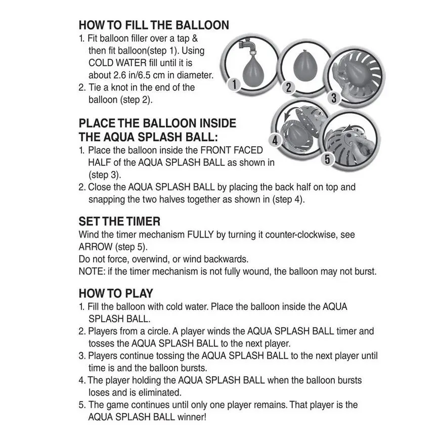 The Aqua Splash Game Set comes with an Aqua Splash ball, 50 water balloons, and a balloon fill nozzle. Fill a water balloon, place it in the Aqua Splash ball, and set the attached timer. When the timer goes off the water balloon bursts! Whoever is left holding the ball when the balloon bursts is eliminated. It’s the wet version of Hot Potato for splashy summertime fun!