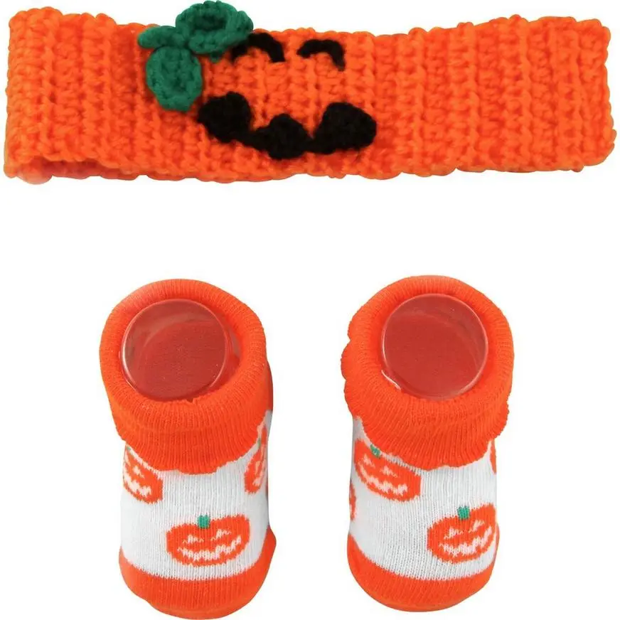 For your little slice of pumpkin pie, this Baby Pumpkin Accessory Kit is perfect for this upcoming Fall. This kit comes with an orange knit headband featuring a black embroidered smiling face and white socks printed with orange jack-o-lanterns. Fall in love with these pumpkin-themed accessories.