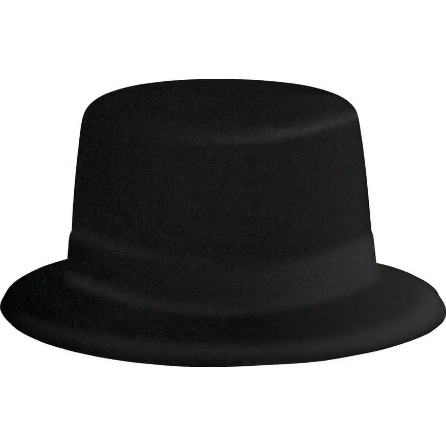 Put on the Ritz in a Black Top Hat! This classic-shaped black top hat is made of plastic with a flocked coating that feels like felt. It’s the perfect accessory to finish any formal look! Wear a top hat as part of a Halloween costume or put it on for a dapper addition to your attire at a costume party.