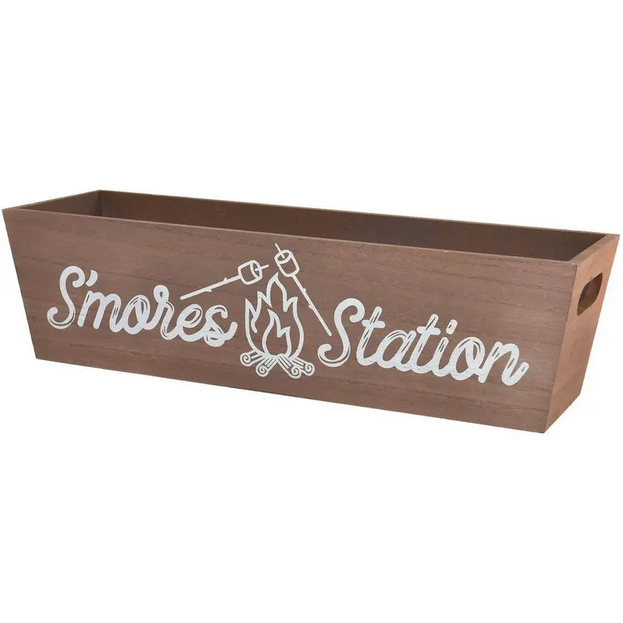 Serve up all your s’mores ingredients in this perfectly themed container. It features a “S’mores Station” headline, a wood grain texture, and handle cutouts on either side for easy transport.