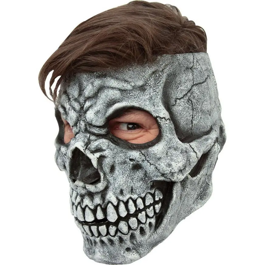 Complete your skeleton costume with a Gray Skull Mask! The gray latex mask looks like a skull with cracks and wrinkles. Pair this mask with gray apparel or a skeleton jumpsuit (sold separately) to create your own skeleton costume. Trick-or-treaters will be scared to the bone on Halloween when you answer the door in this terrifying Gray Skull Mask!