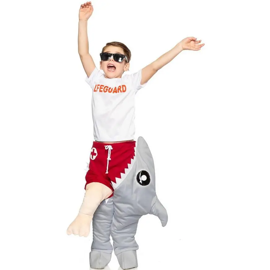 Will your little lifesaver survive this vicious shark attack? They can add some surprise and suspense to the costume contest in a Shark Attack Costume for kids. This hilarious costume is effortless — just have them put on the white “Lifeguard” short-sleeve T-shirt, then step into the soft pants. The padded pants look like a shark has swallowed one of their legs below the matching red guard shorts. No good deed goes unpunished in this hilarious shark look!