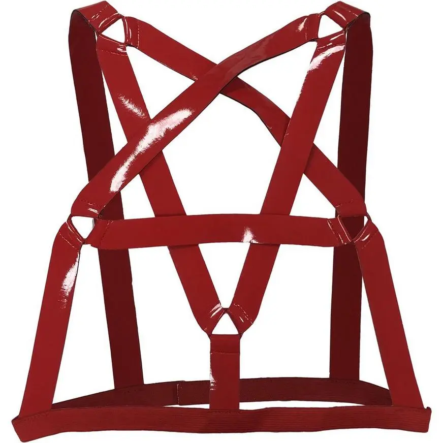 Accentuate your devilish costume with a red harness! The vinyl harness features straps that crisscross across your chest for a bit of edge. Add some devil horns and head out into the night to make mischief.