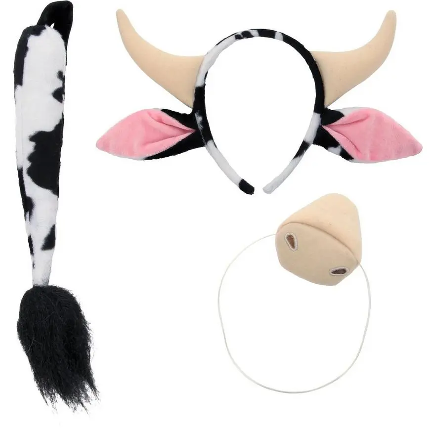 Turn Halloween into a barnyard bash for your little one by dressing them up in a Cow Costume Accessory Kit for girls! First, start with the headband with attached cow horns and ears. Pair the headband with the included cow nose featuring an attached elastic band. Complete the look with the black and white tail and your little one will look like the cutest cow in the farm! Shirt and gloves not included.