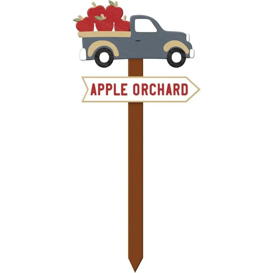 Give your guests a warm welcome when you set up this fall apple orchard yard stake in your garden or front yard! Celebrate the harvest with this wooden yard stake, featuring a pick up truck carrying a bundle of apples.