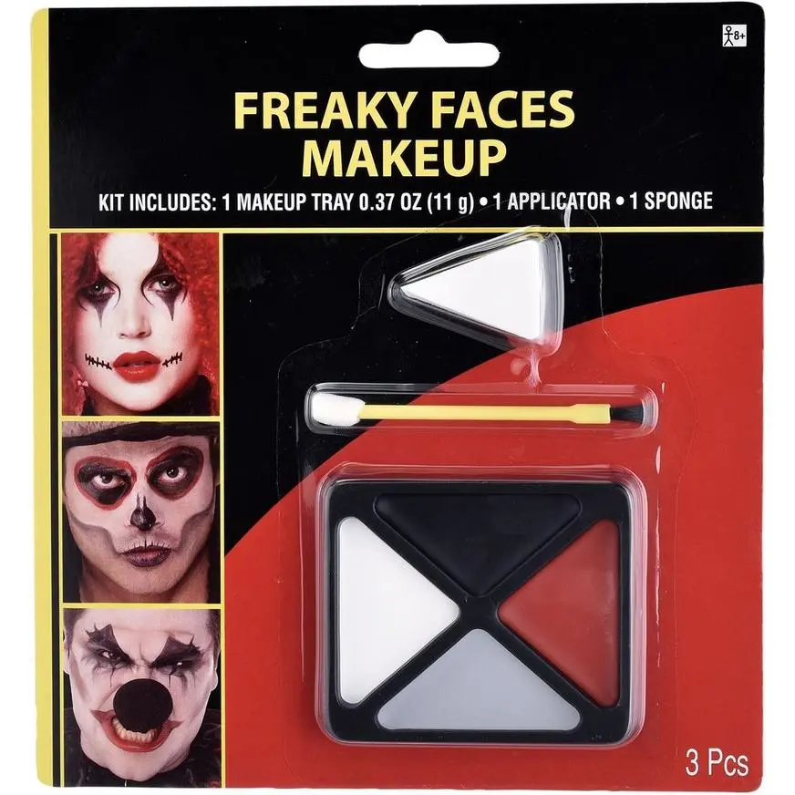Take your Halloween look to freakishly spooky levels using this Freaky Face Makeup Kit! This non-toxic makeup kit features theatrical makeup that glides on smoothly in four colors including black, gray, red, and white and also includes a dual tip sponge and a long applicator. Freak out Halloween party guests when you show up in your own scary style using this Freaky Face Makeup Kit.