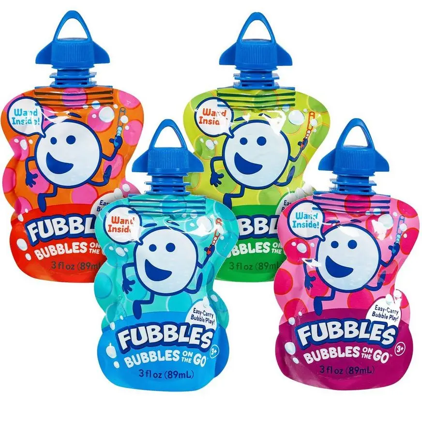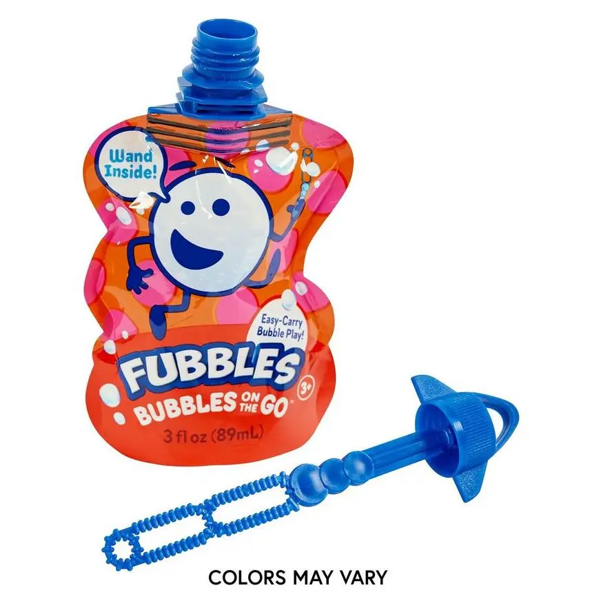 Fubbles Bubbles-on-the-Go are the perfect bubbles to take everywhere a kid can play. Designed with kids in mind, the refillable Fubbles packet holds 3oz of premium, non-toxic bubble solution and features a built-in wand attached to the lid. Fubbles pouches come in four fun colors, which one you get is a surprise!