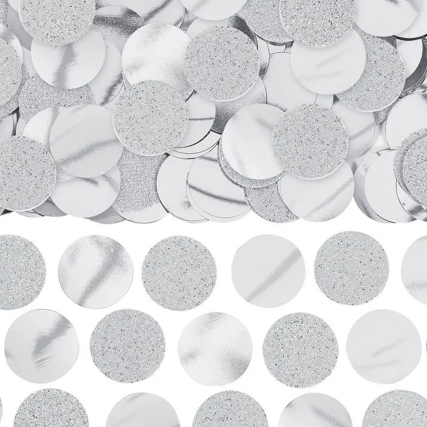 Create a dazzling polka dot display at your party! This pack of Glitter Silver Circle Confetti features metallic silver circles and round glitter cardstock cutouts. Decorate your table with glittery goodness or add a pinch of silver confetti to invitations for a fun surprise.