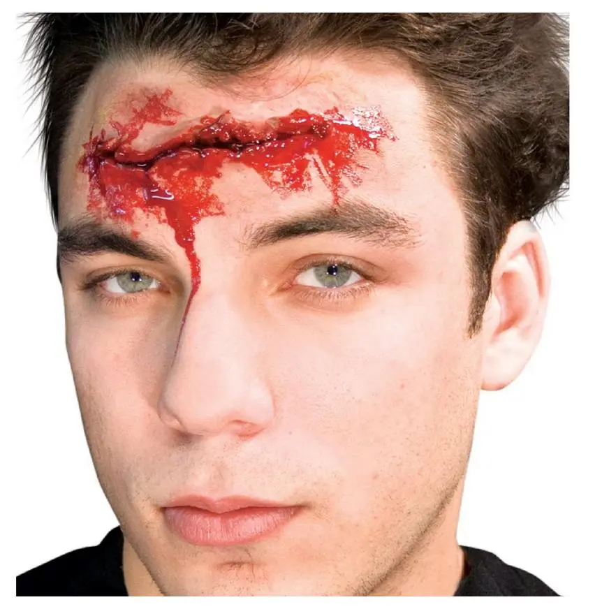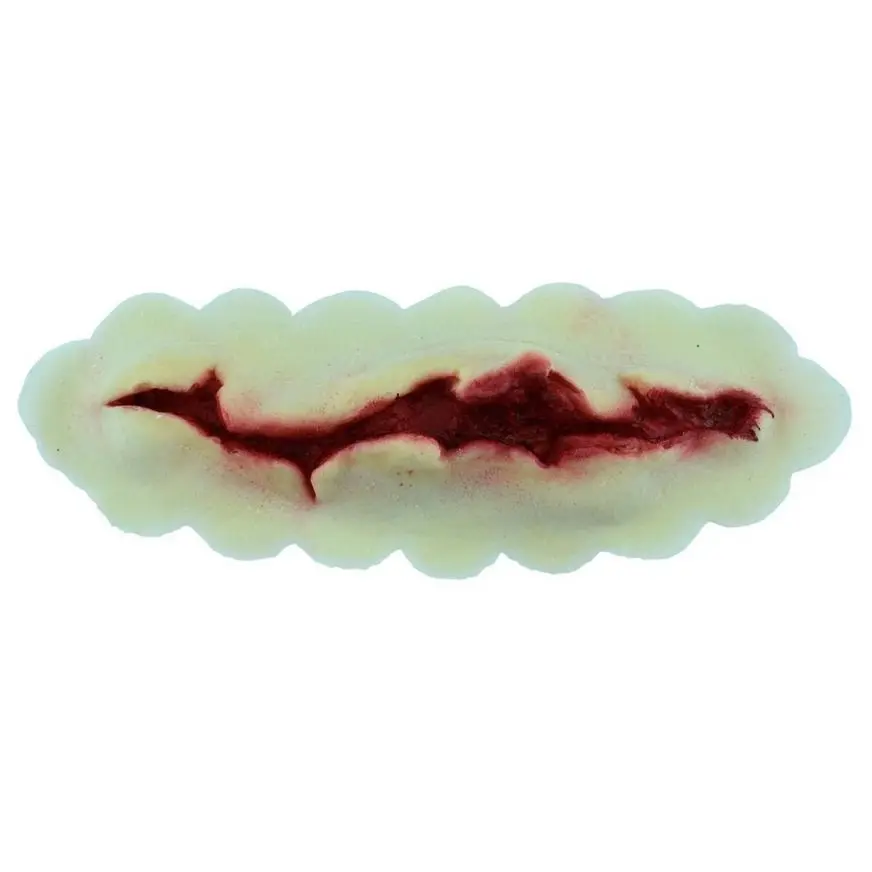 Tear into a great Halloween with our Grand Opening Prosthetic! This latex prosthetic is made to look like a deep bloody gash and features textured detailing. Simply use Spirit Gum to apply and blend with make-up for ultra-realistic effects! Both Spirit Gum and make-up sold separately. Grand Opening Prosthetic measures 4 1/4in long.