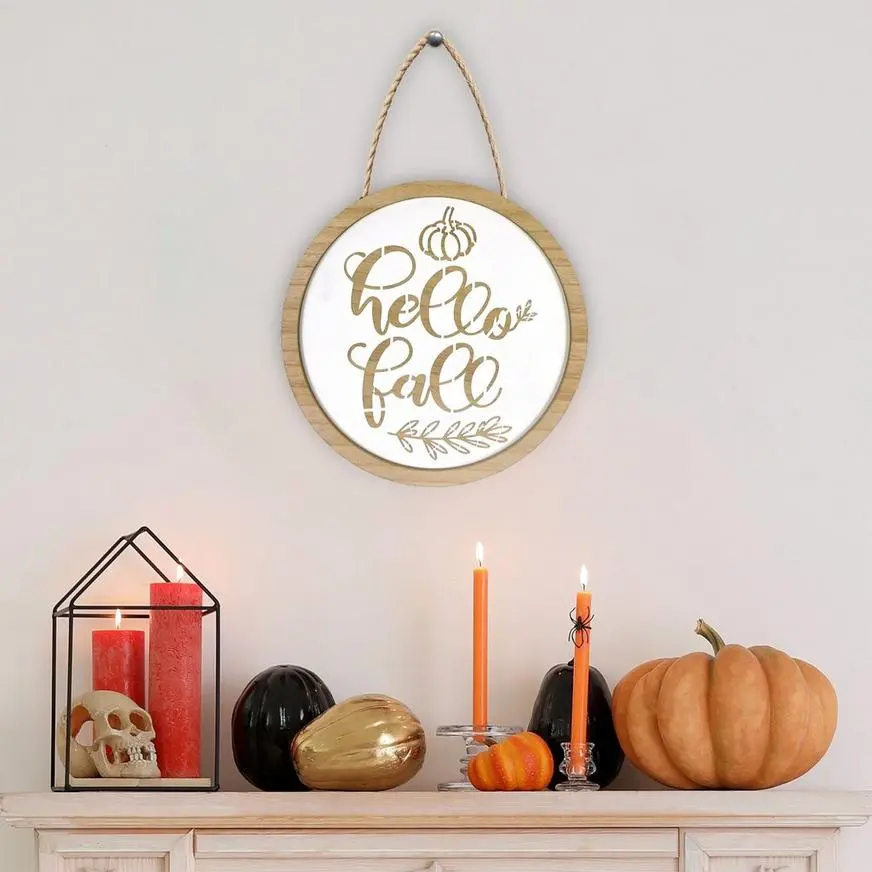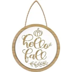 If you love fall, say it with a sign! Get in the spirit of autumn with this wood-like sign featuring the phrase “Hello Fall” on a metal background. Hang it on any door or wall to make your home feel more cozy and welcoming.