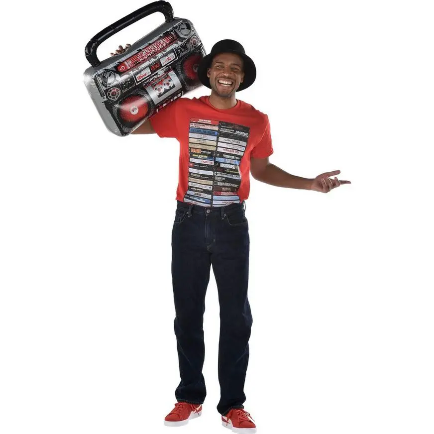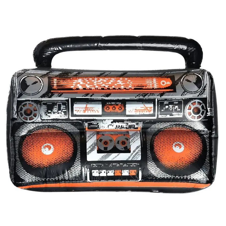 Yo, wassup with the tunes? Share your hip hop attitude with the ‘hood with this oversize Inflatable Boom Box. Vinyl black Boom Box features all the markings of a traditional boom box complete with the oversize handle. Boom Box is Easy to inflate.