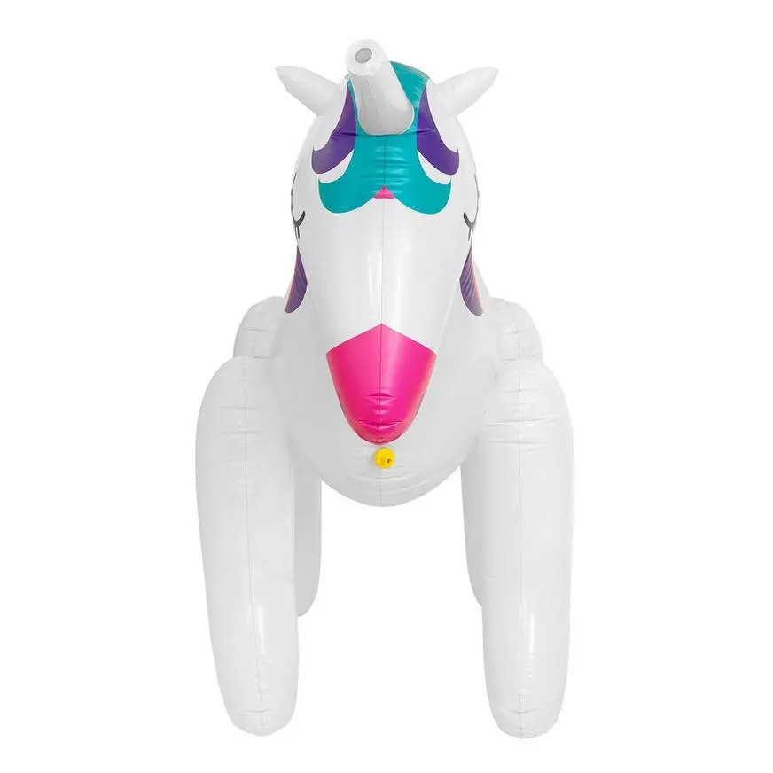 Get the wet and wild summer fun going with the Inflatable Unicorn Sprinkler! This jumbo-size sprinkler looks like a peaceful unicorn and easily connects to your garden hose.