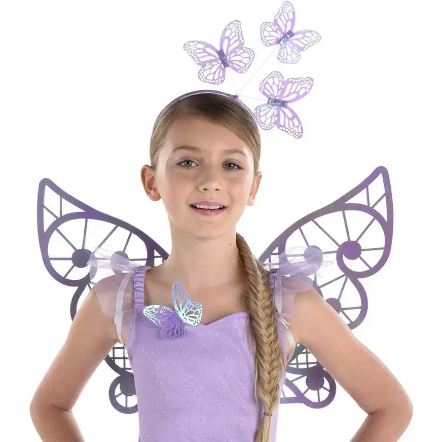 You’ll be amazed to see your child’s metamorphosis into a beautiful butterfly! The Shimmering Buttefly costume features a sparkling purple dress with a multilayered skirt, iridescent filigree butterfly wings, and a butterfly headband.