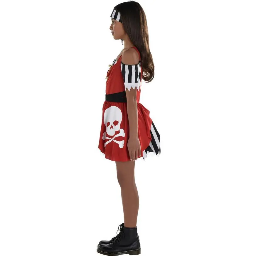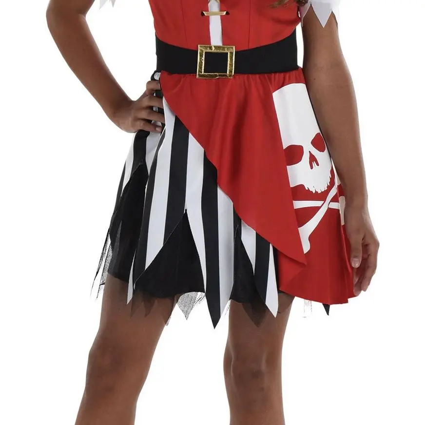 They’ll win the battle before firing a shot as the terrifying Skull Pirate! This pirate costume features a black and white striped dress with an attached skull bodice and belt. A matching headscarf completes this swashbuckler look.