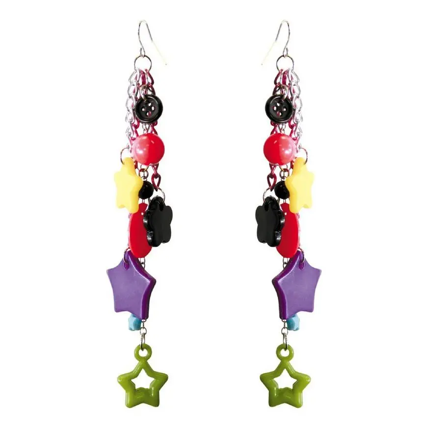 Your ears will shine with our Multi Color Dangle Earrings! Our Dangle Earrings feature stars, chains, balls and wheels on a silver earring hook. Our Multi Color Dangle Earrings are perfect for completing your look!