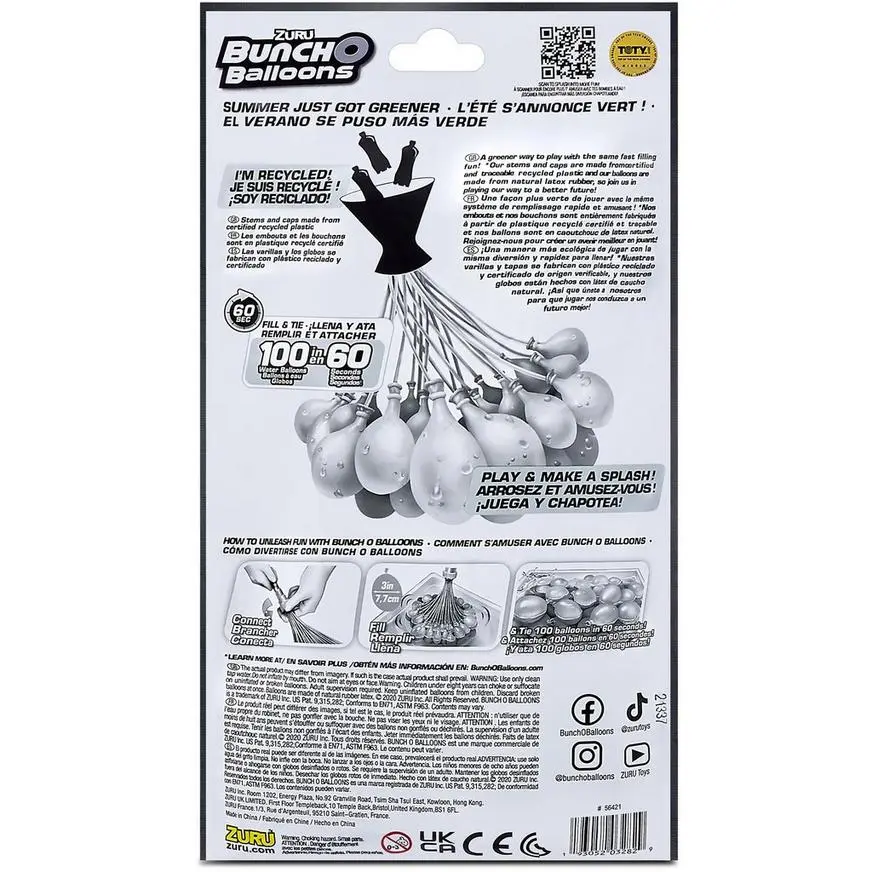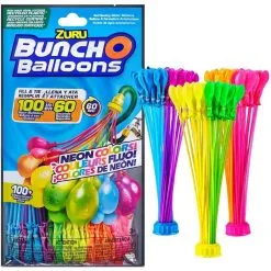 Fill your water balloon battles with a spark of color with the craziest, most wacky water balloons ever! Fill and tie 100 Neon Splash water balloons in less than 60 seconds with these sensational self-tying water balloons. With innovative O-Ring technology and Rapid Fill capabilities, say goodbye to the stress and mess of filling individual water balloons and say hello to never ending splash out loud fun. Simply connect, fill, and make hundreds of water balloons with no hand-tying.