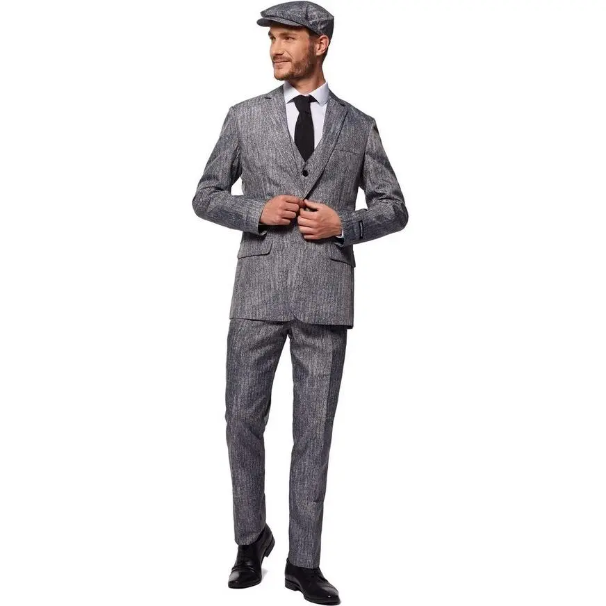 This full 1920s Gangster outfit looks like came right out of a period TV series or cinematic production. The tweed-inspired jacket, waistcoat, and pant set will have you looking dapper as you take care of Halloween business. Finish off the look with the black tie and gray flat cap and you’re ready to cause a bit of trouble.