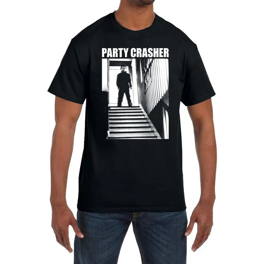 Adult Black Michael Myers Party Crasher Cotton T-Shirt product details: