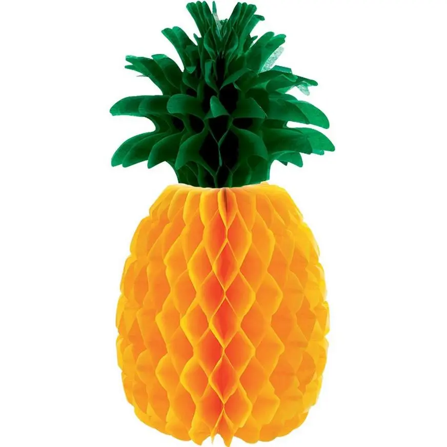 Juice up your summer party decorations with a Pineapple Honeycomb Centerpiece! This fruity paper centerpiece features a yellow honeycomb body topped with green tissue resembling leaves. The perfect addition to your summer setting, this Pineapple Honeycomb Centerpiece will make your party a sweet success!