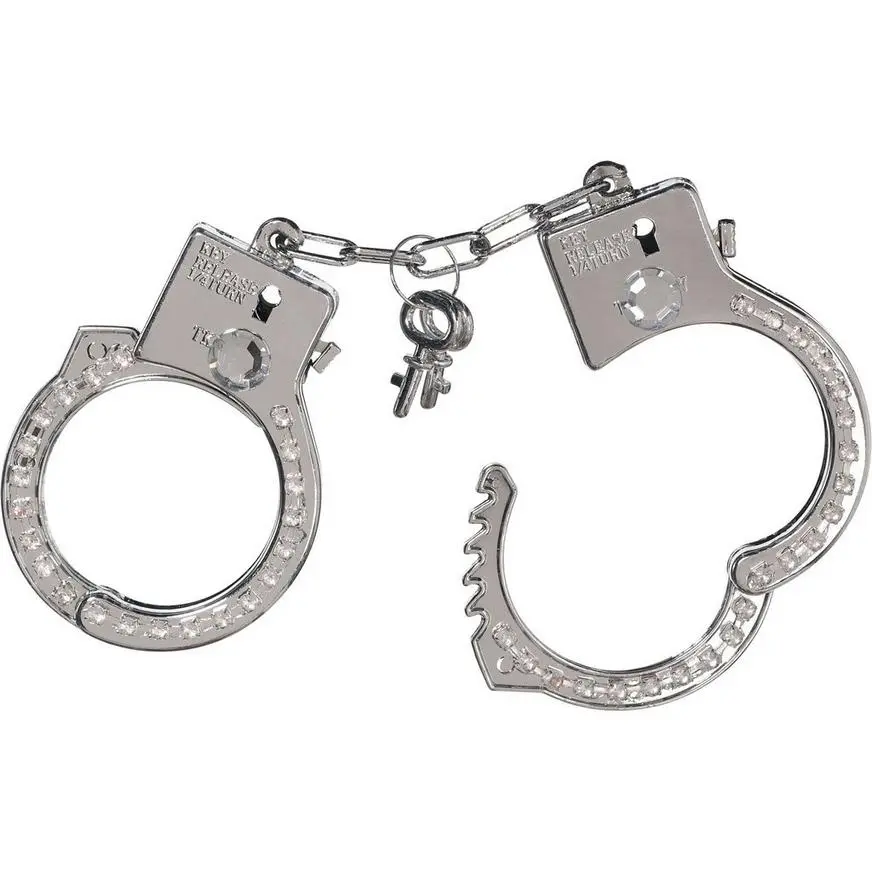 Cuff her and throw her in the clink! They’ll show a little mercy to you by using these fancy Rhinestone Handcuffs! Metal, working, handcuffs feature a row of inset rhinestones. Handcuffs are connected by linking chains. Each set includes 2 keys.