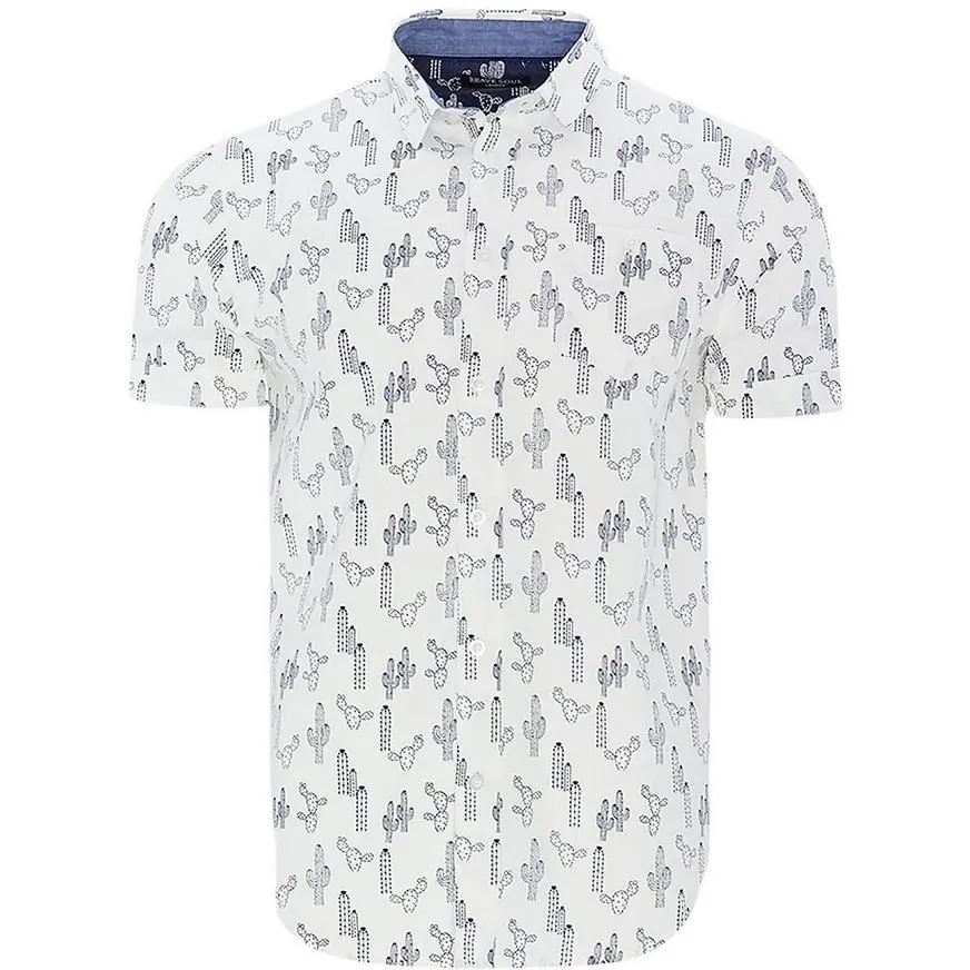 Look hot this summer by throwing on this Mens Sahara Ecru Hawaiian Shirt! This soft cotton value down shirt features a repeated cactus print against a white background and a front pocket. Put a hot twist on your summer outfit by wearing this dapper summer shirt! Review the size chart for additional sizing information.